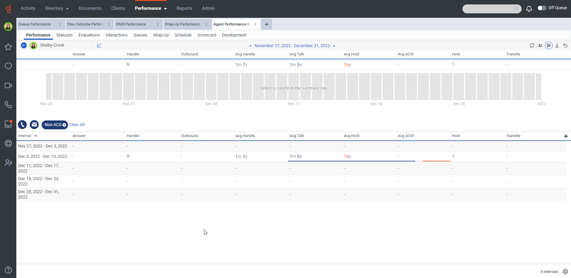 Interactions View w/ Non-ACD Column Added; Outbound Interaction listed as "non acd" (so should have shown on performance view)