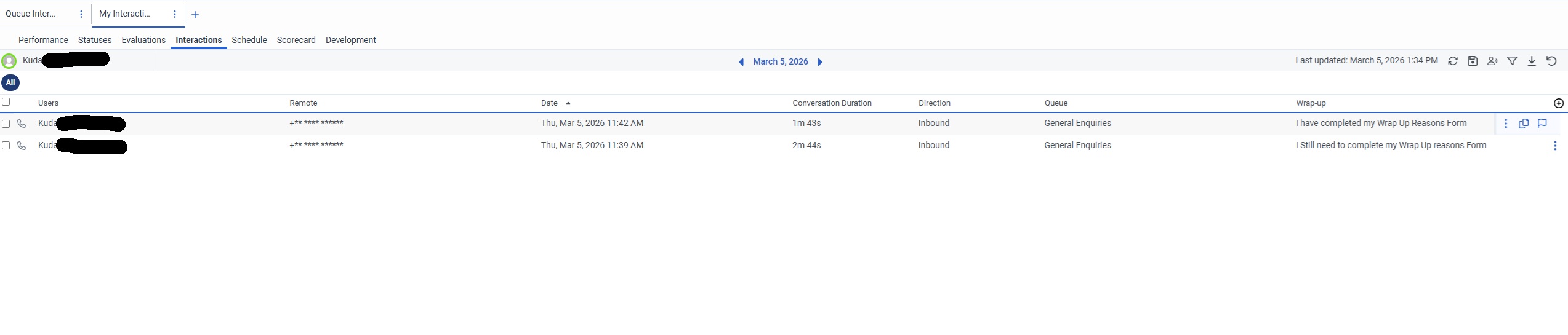 Thank you for the clarification, I see the same on my side. I had a look at the release notes to see if there was perhaps something mentioned, but could not find anything. I did however notice the following - https://help.genesys.cloud/articles/my-interactions-view/