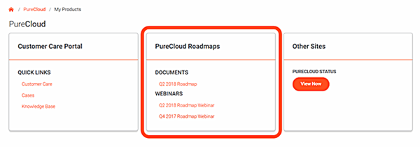 This will take you to the PureCloud / My Products page which will provide you quick access to the PureCloud Roadmap presentations and recordings.