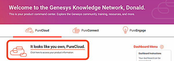 After logging into the Genesys Knowledge Network select the It looks like you own, PureCloud section shown below: