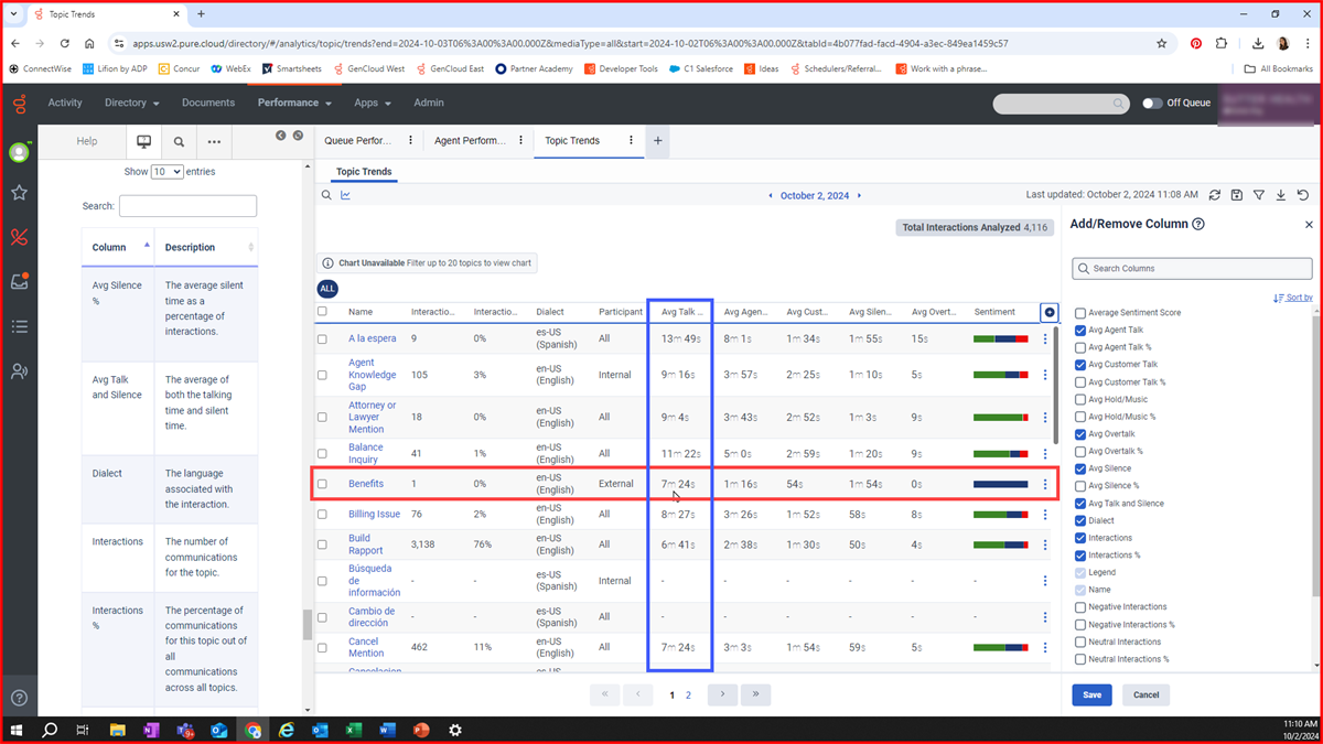 1) A single interaction has a significantly higher avg talk/silence than the avg talk and avg silence columns; how is this possible?