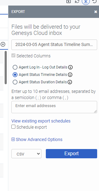 There are four export options within a schedule: Activites, Scheduled and Forecast, Agent Shifts, and activity counts. When I export Activities it gives me everything I want as far as agent name, activity code name, start, end, length etc except that it is spitting back information that is scheduled. What I want to see is this exact same information but I want it on what actually took place and not what was scheduled. For example, if an agent was scheduled for On queue time but actually put themselves in 'busy' i.e. unavailable then I want to see how many times an agent put themselves in a state other than what they were scheduled for and for how long. Is there currently a way for me to export something that shows me what actually happened and not what was scheduled to happen within the schedule section?