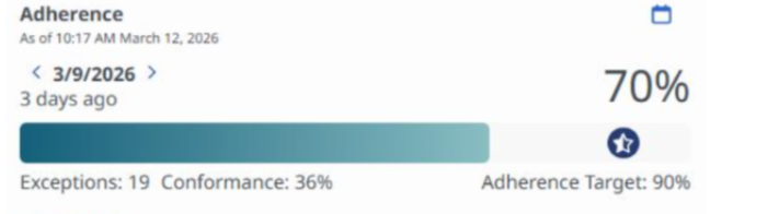 I can see there is an adherence widget on the Overview page for agents and we can set a target for this in Business Management settings.