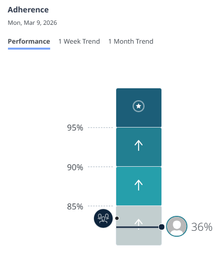 For a particular day this week for an agent, their Gamification adherence was 36%, but on their schedule that figure was showing as conformance.