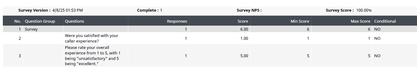 Oh interesting, that is a clever work around. Do you have a sample of what the CX3 response reporting looks like using those surveys?