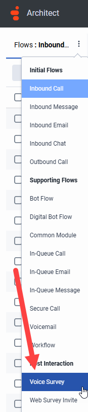 Then in Architect you can create a new voice survey flow, choose the survey you created, and it'll do a lot of the work for you. The simplicity of it is great: