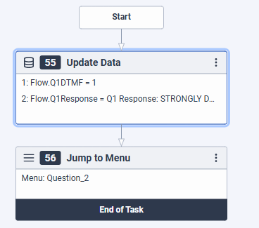 Every response in the menu, updates variables relating to the question. So for example for Question 1, if I select 1, we update the DTMF and Q1 variable to reflect that, then move to the next Menu(Question2).