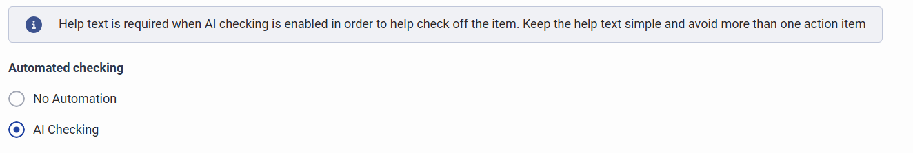 Based on this guidance, the checklist is automatically marked as completed when the AI determines that the requirement described in the help text was fulfilled during the interaction.