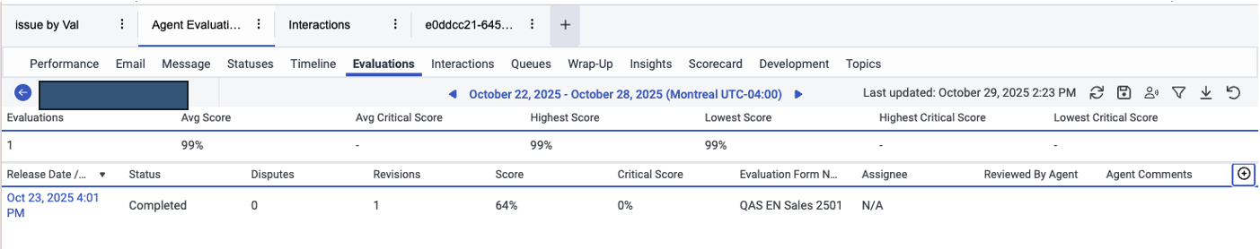 I got contacted by Quality Assurance specialist - they have hard time interpreting Agent Evaluations view.