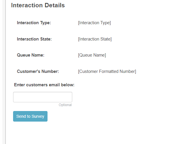 I am trying to create a Use Case where an Agent at the end of a call asks for a customer's email, inputs that email then clicks Send to Survey which would then generate a Web Survey. The majority of customers are new and do not exist in a database or External Contacts.