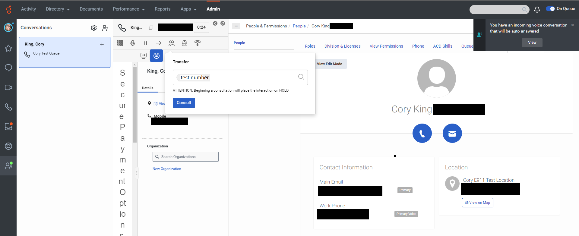4. Instead of being presented with the option to 'Consult', then new number is "dropped"