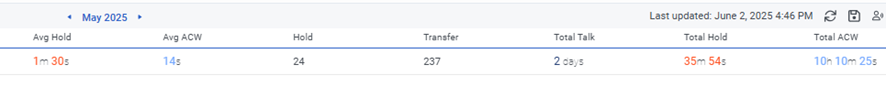 I'll give you an example with data from May; the total talk we see in the exported report is very different from what is shown in the view. This does not happen with the rest of the data.