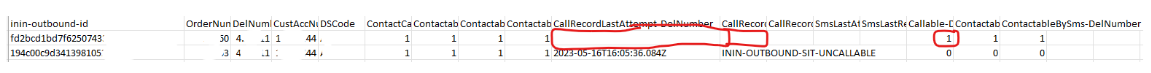This is the exported contact list after the campaign finished. The top record was the call back which was sent to the queue and. At this point, I would expect the CallRecord to be update with data to have some sort of log of the LastAttempt and the Callable set to '0'