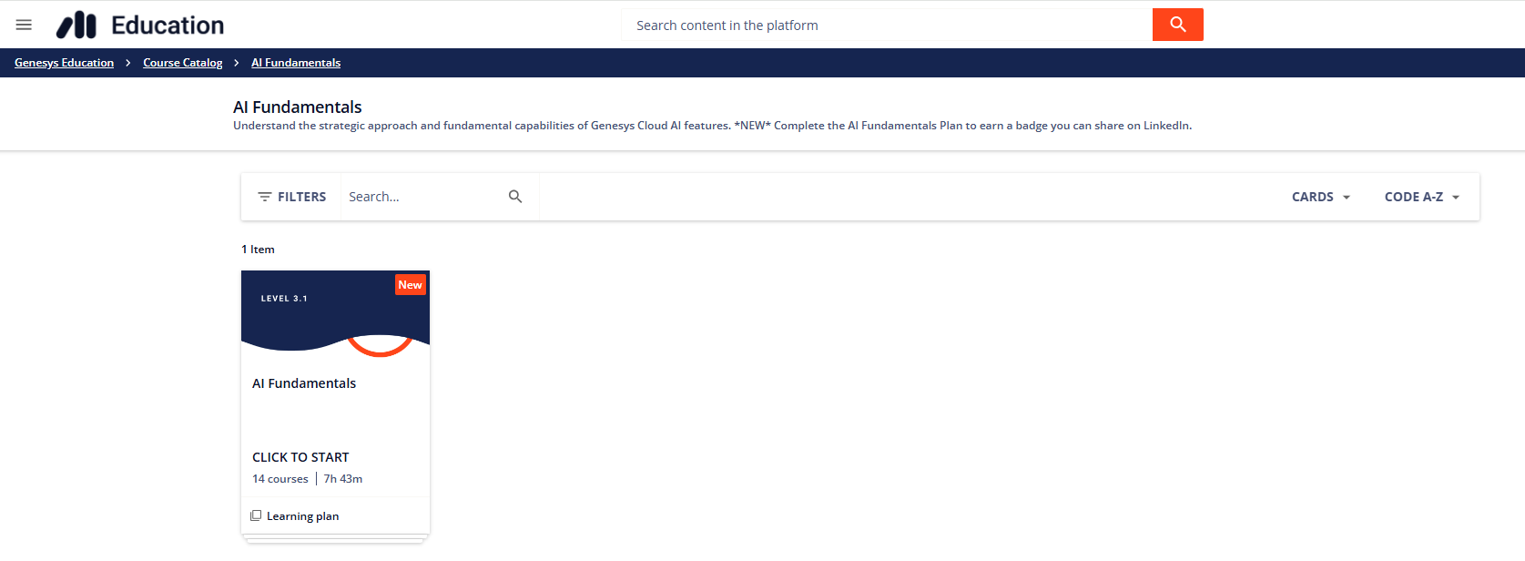 We offer an AI Fundamentals learning plan that covers AI-agnostic content, so it is not just specific to Genesys. It's designed to provide a broader understanding of core AI concepts and help build strong foundational knowledge.