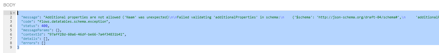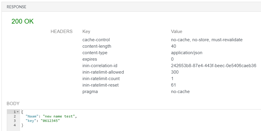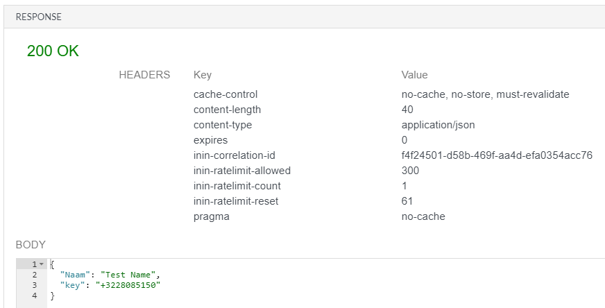 I give in this request:{"Blocked_Numbers":"+31612345678","Naam":"Test name"}