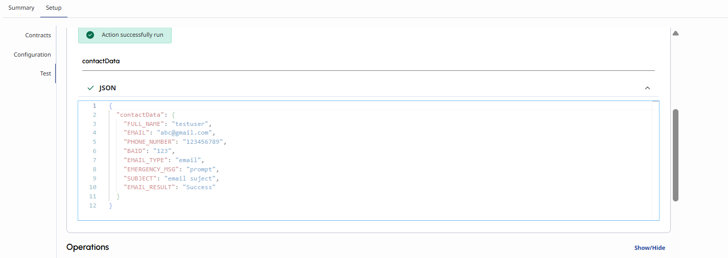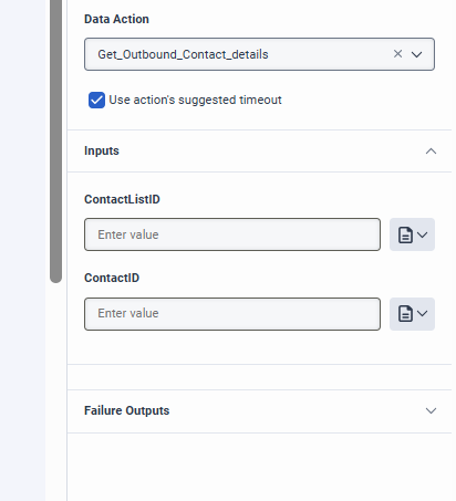 Created a Data Action to retrieve contact information using contactID and contactListID. The Data Action is designed to fetch details from a contact list in an object format.