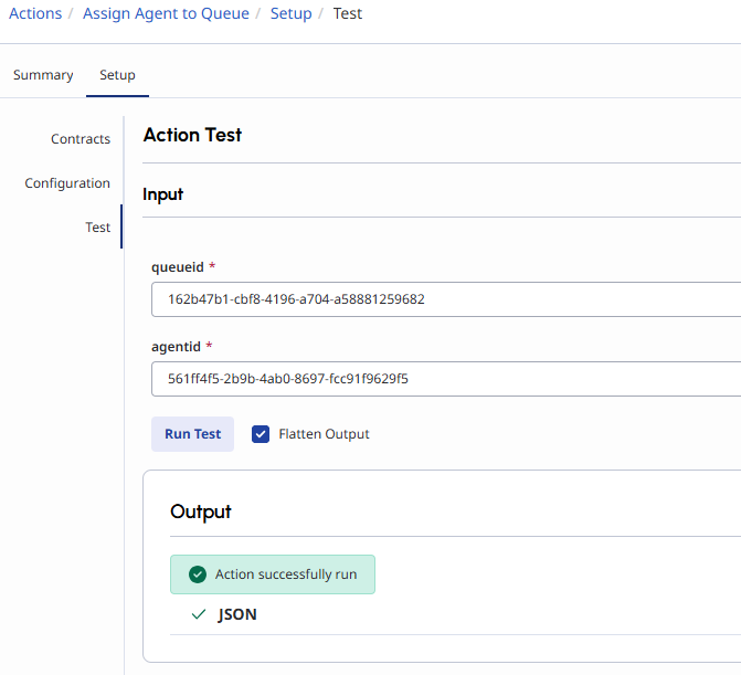 After you have your Data Action, you can execute it on the workflow with 2 inputs: