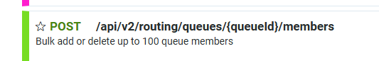 8) I believe the API you will use should be this one: POST /api/v2/routing/queues/{queueId}/members