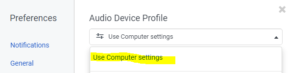 Often a refresh or reselecting the blue 'Use computer settings' from the audio device profile resolves the issue and can be done on a call with immediate impact to call quality.