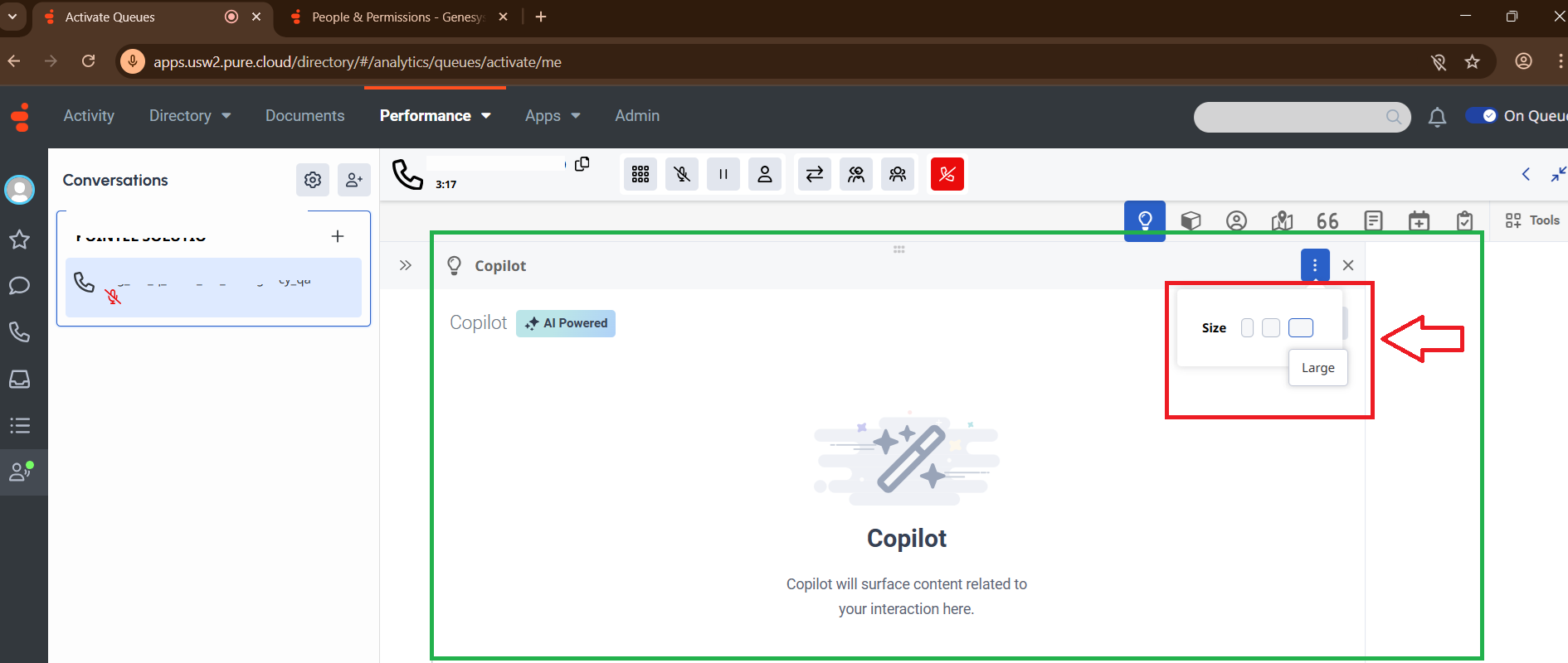 We are looking for the Copilot resize option in the new interaction window, similar to what is available in the Genesys Cloud web client.