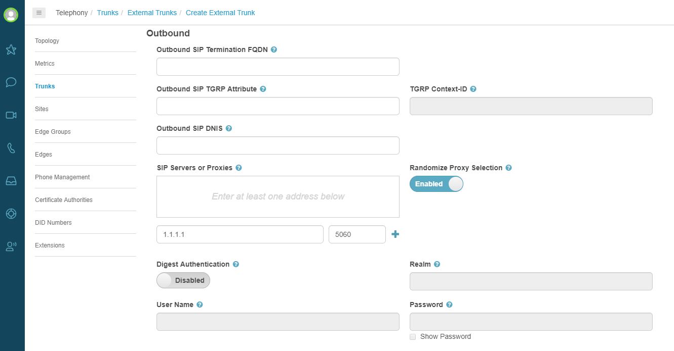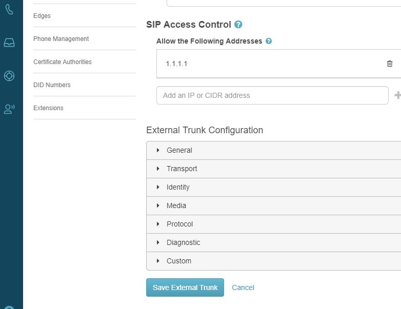 How to configure External Trunk in PureCloud UI for BYOC AT&T IP Toll Free:Prereq
