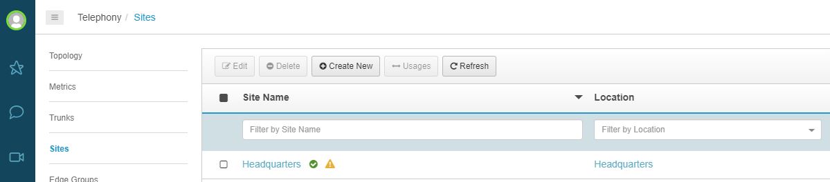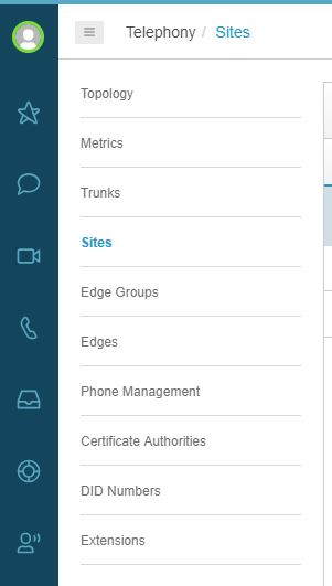 9. Click on Sites, this link should be available as long as you are still in the Telephony Admin section.