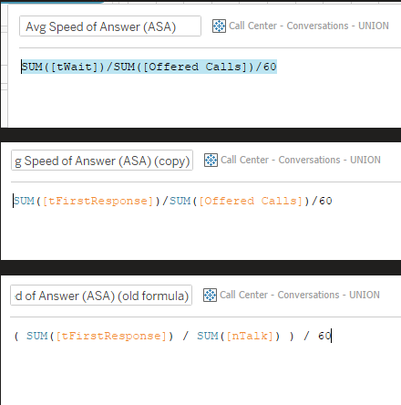We've established connections to the conversations API data and are building dashboard in Tableau off of that data. I am having a hard time tying back ASA in Tableau to the front end views in Genesys Cloud. I'm trying to see if we have an issue with the code or an issue with a calculated field in Tableau.. or both. Ideally, I'd like to be able to replicate the Genesys Cloud Queues Performance view in Tableau accurately.