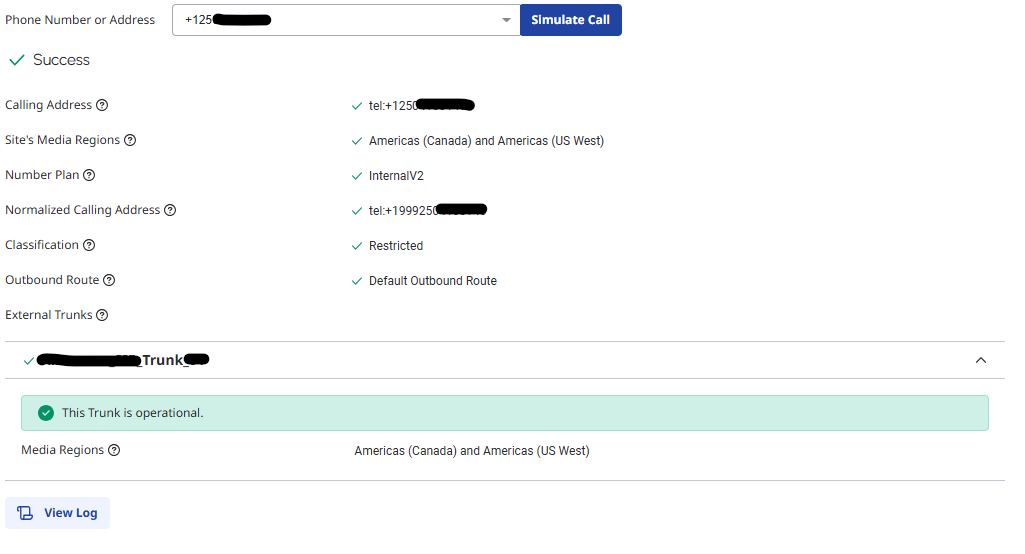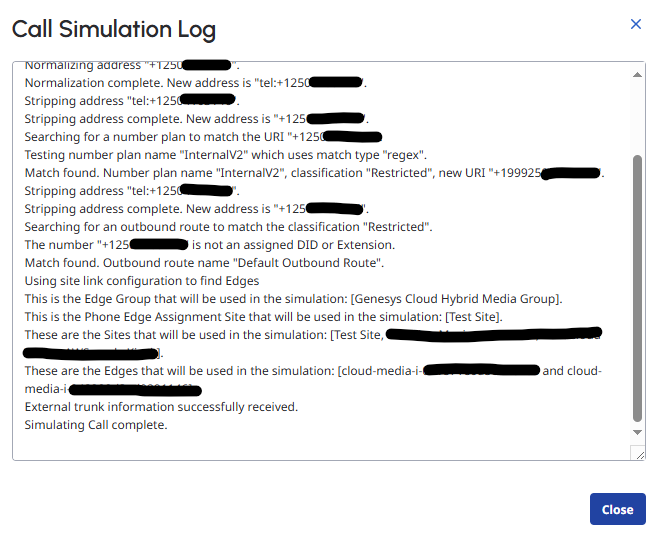 When we test it doesn't seem to be working and when we Simulate Call, it does show hitting the proper Number Plan and Classification that we created.