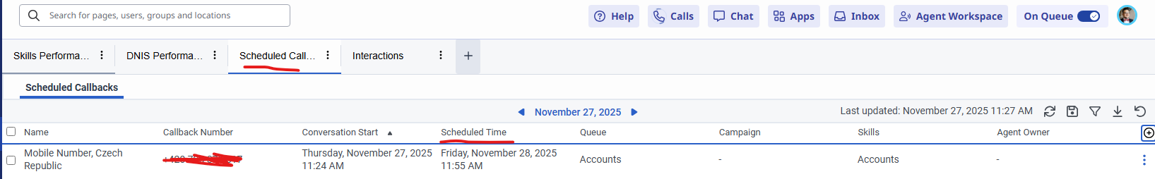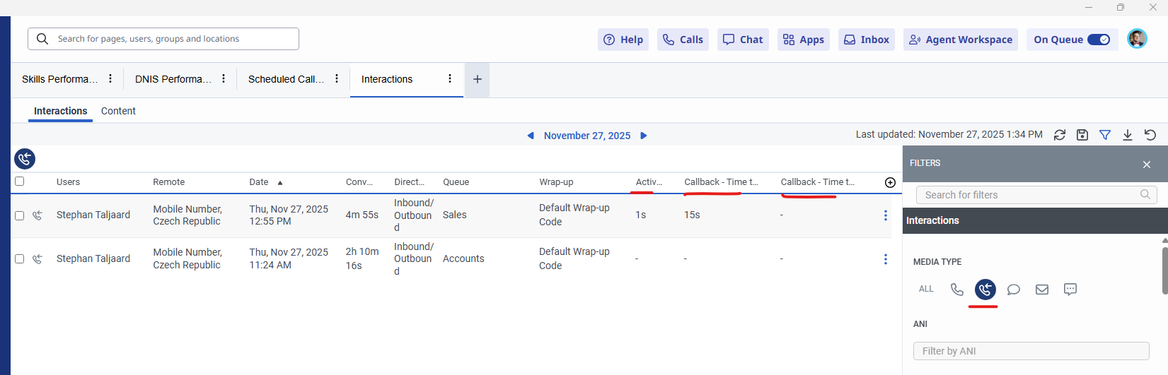 In the case of scheduled callbacks for inbound calls, how can we retrieve the history of each interaction - that is, how can we get the dates and times of scheduled callbacks, whether completed or in progress, via API or any other method?