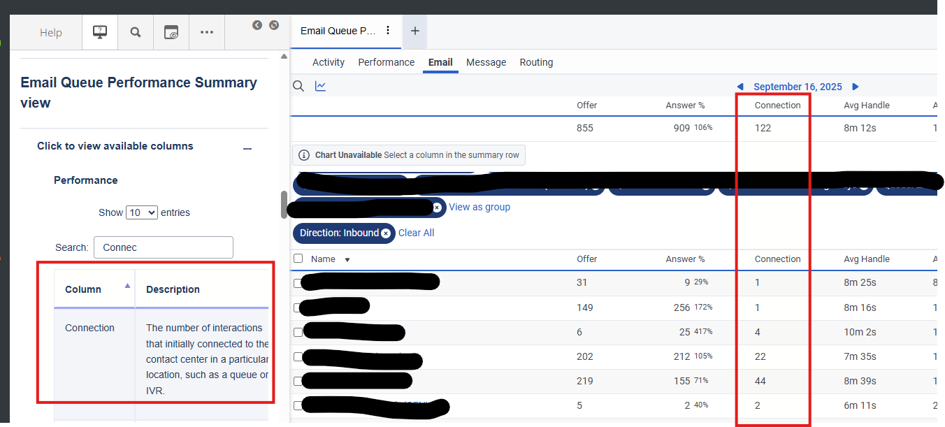 Trying to understand the reporting for Emails, and i don't quite understand the definition for "Connection". Is "connection" new emails recieved/routed to the queue and offered is what has been presented to a user? Our goal is to understand how many is being recieved in the queue each day, not what is being offered to the staff.