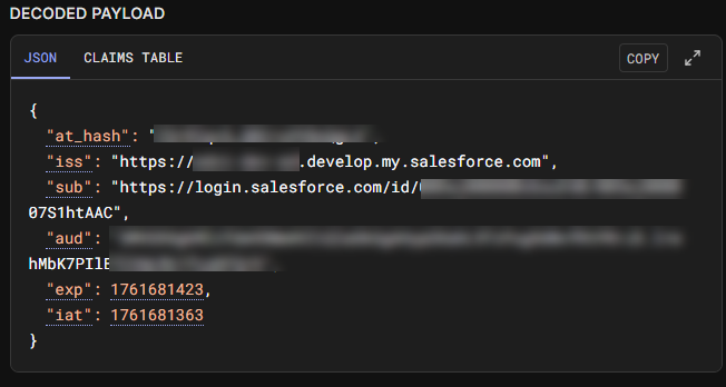 Thank you also for your detailed explanation about the use of the `sub` claim. I can confirm we weren't using any custom claims or changing the `sub` in any way. I'm also confused why that would have made a difference. There isn't any way we can control how Genesys interprets the claims from the JWT, nor is there any way we can modify the `sub` claim's value as sent from SalesForce.