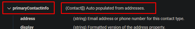 Aside from that, I took a look at the schema for the Patch User API and I don't see the "primaryContactInfo" array in there, so I believe this isn't something that you can update through this API.. I might be wrong, but take a look at the schema below: