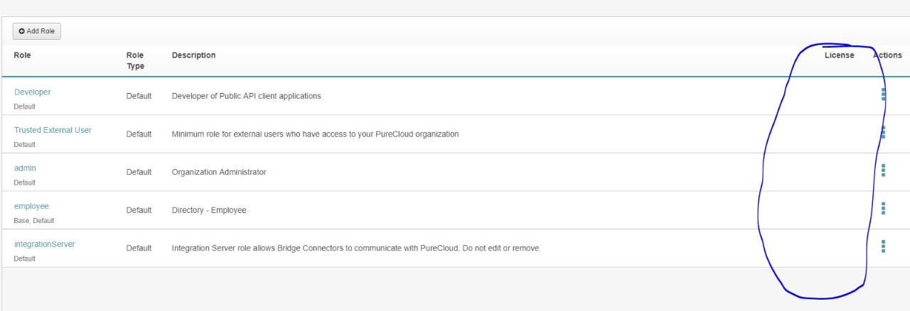 Looks like there is an issue with the license because I cannot see Purecloud 1,2 or 3 next to the role. See image: