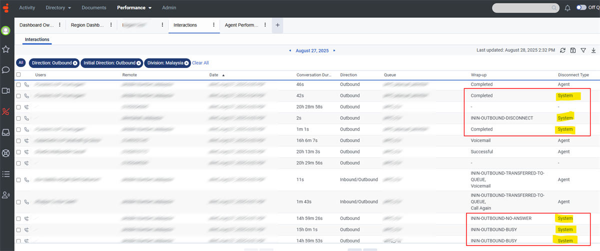 I am not sure what you mean by calls that the Genesys system disposed of. It would be useful to get an example.