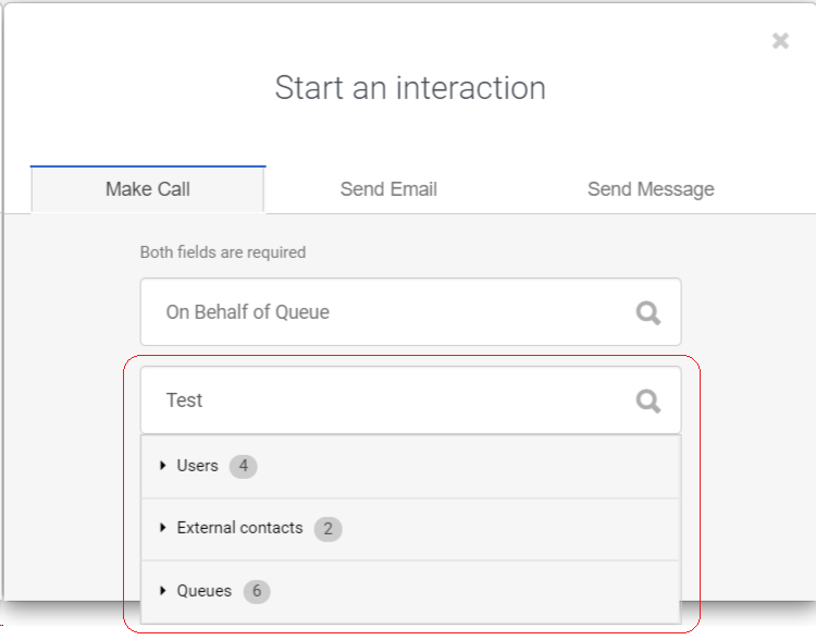 There is no way to configure the search behavior in the different search boxes in Genesys Cloud (dial pad, on behalf of queue, blind transfer, consult transfer, etc.).