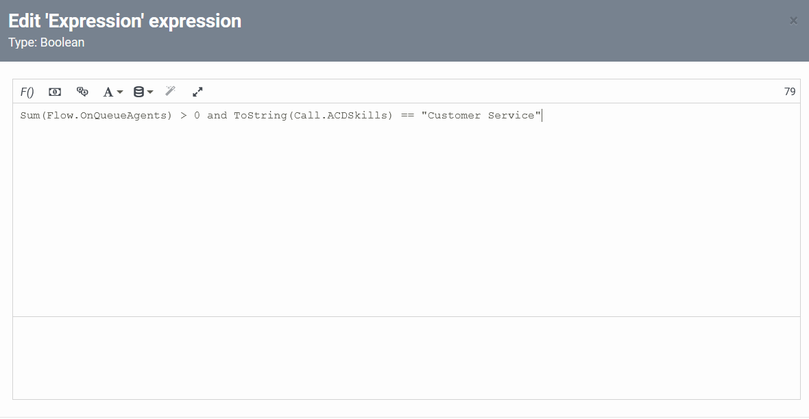 Within an In-Queue flow in Architect, when checking if there is an agent on queue using "sum(Flow.onQueueAgents) > 0" (example below)