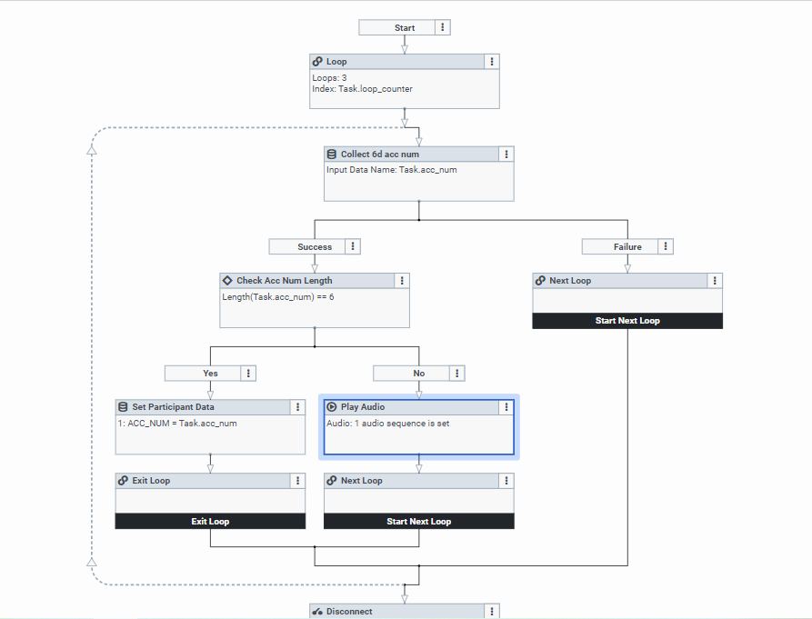 In case if you want to discard the excess digits when it got 7 or more digits in length then place a play audio task and add a blank 100 ms audio with unchecking the "Enable Barge-in" check box. this will discard or flush out the excess digits, and when we go back to collect account number state it will also play the prompt which is set and it will wait for your input.