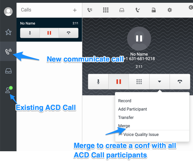 - Start a communicate call with the additional party and then merge it with the ACD call.