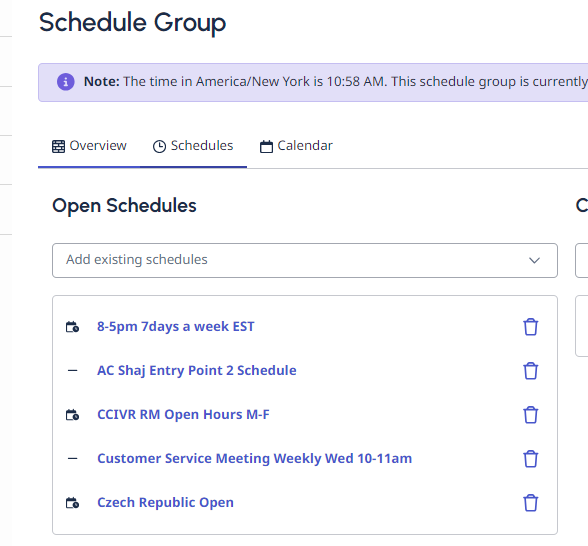For example : M-Tu, 0830-1700, W 0915-1900, Th 0830-1600, F 0830-1630. We can implement this usecase by creating four different schedules which support each unique timing and assign it to single schedule group. But would like to know if it can be done on schedule level.