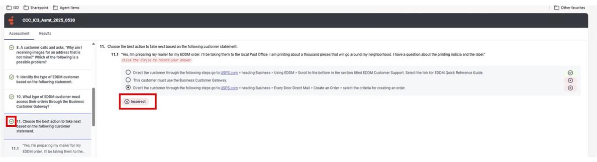 Subject: Confirm Logic of Green Check mark next to Assessment Question