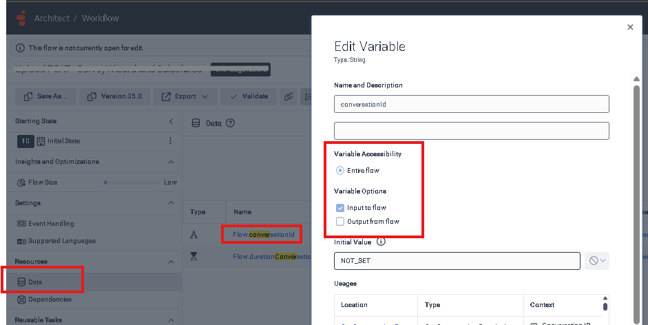 I have created Flow.conversationId and left no value as assigned. Not worked.
