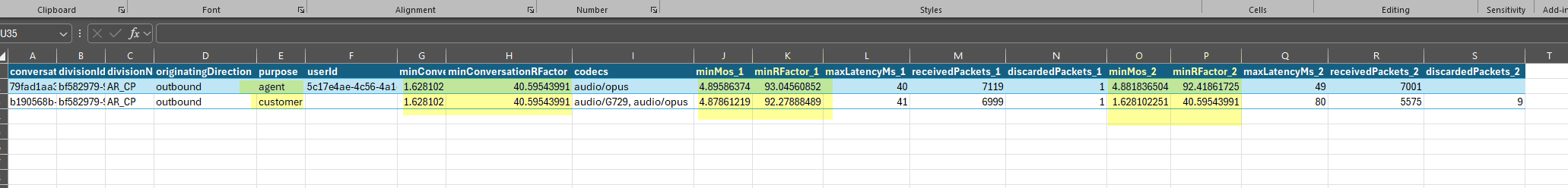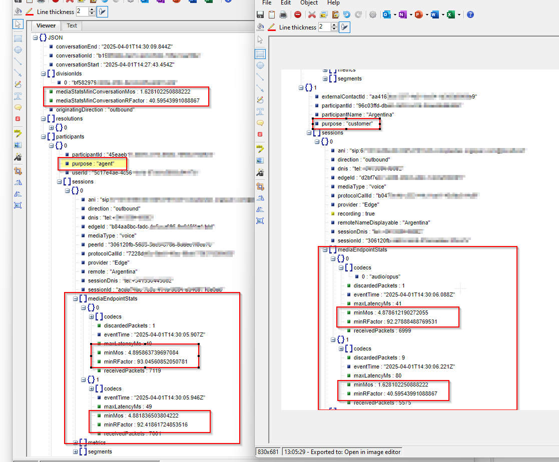 I have been looking into MOS score and R-factor values for a conversation which will have multiple values of MOS/R-Factor. I have noticed that on our outbound calls we will often see a big difference in these values. Here is an extreme example.
