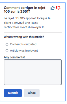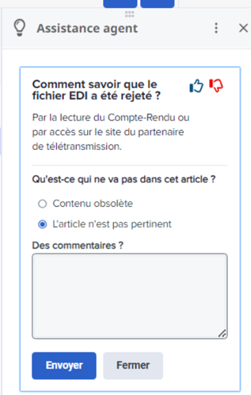 In Copilot, on the agent side, when we 1st click on the thumb down, and then on "provide feedback" button, we've got this window (here it is in english for better understanding) :