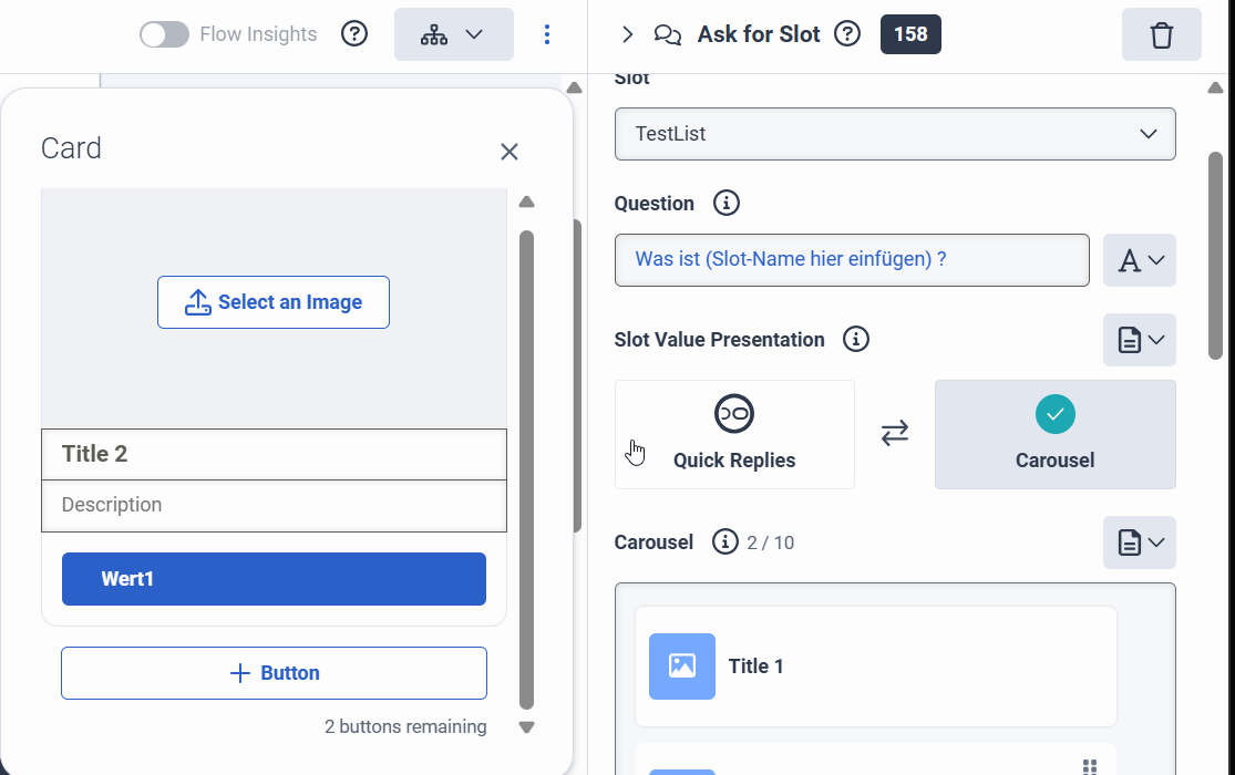 we run into a problem: We want to create carouels with the digital menu action described here (as an alternative to Google DF CX):