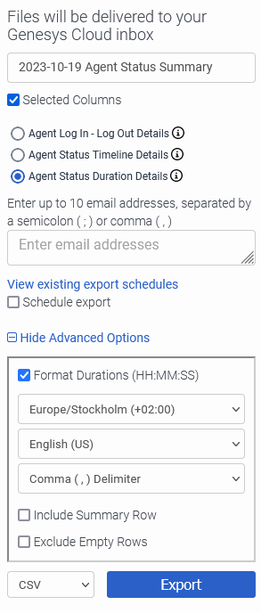 I am looking to extrapolate some data for an associate that is having some "trouble" meeting adherence and conformance numbers. But I am having some trouble figuring out how to manipulate the data. The question is what number formatting is Agent Status exported in?