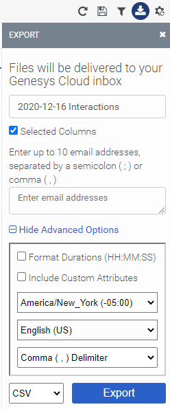 Daniel, the Genesys Cloud platform is really moving away from the use of flat reports and recommends using our export functionality on the various performance views we provide.  When using the export, we do try to match up the locale of the user.  (This is subject to whatever IP we detect so if you are working from home and your VPN says you are sitting in Kansas then that is the region we'd try to map to.)  Here is a screenshot showing where this can be accomplished.