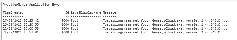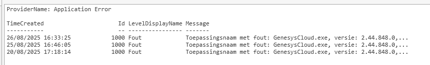 Running some tools we see GenesysCloud.exe app reliability sore of 17 and mean time between crashes is now down to 7 Hr and 27 min.