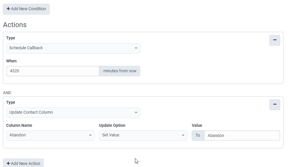 Then in your actions you'd choose Schedule Callback >> set this to 4320 minutes from now (this should be 72 hours).
