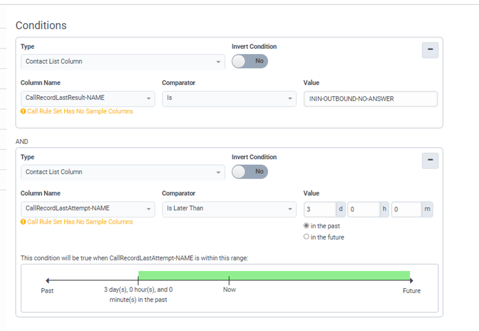 Rules we added were, each had their own variance and depended on the outcome of the initial call and the delay we set between attempts