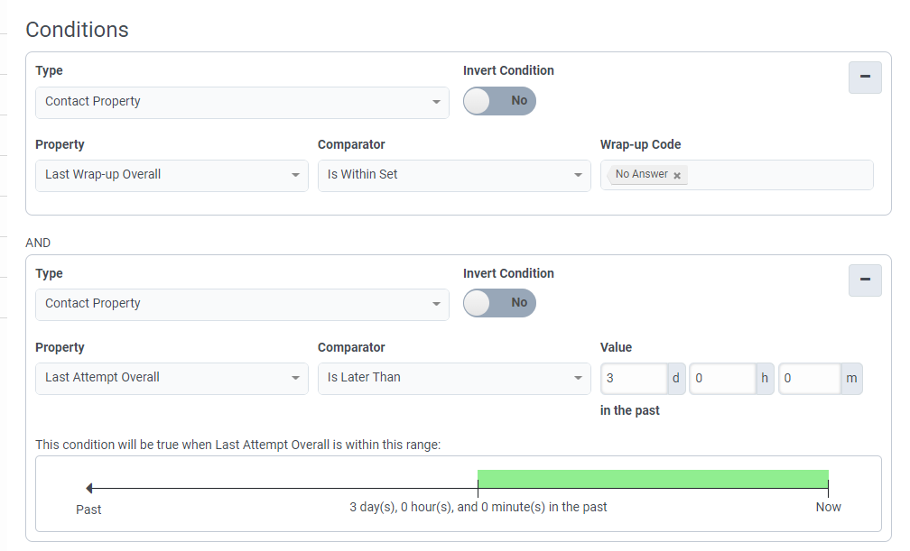 Then add another condition with checks for Last Attempt Overall is later than 72 hours.